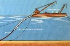 Tow-in installation is just what it sounds like; here, the pipe is suspended in the Stingers, measuring up to 300 feet (91 meters) long, extend from the stern to support the pipe as it is moved into the water, as well as control the curvature of the installation. Some pipelay barges have adjustable stingers, which can be shortened or lengthened according to the water depth.